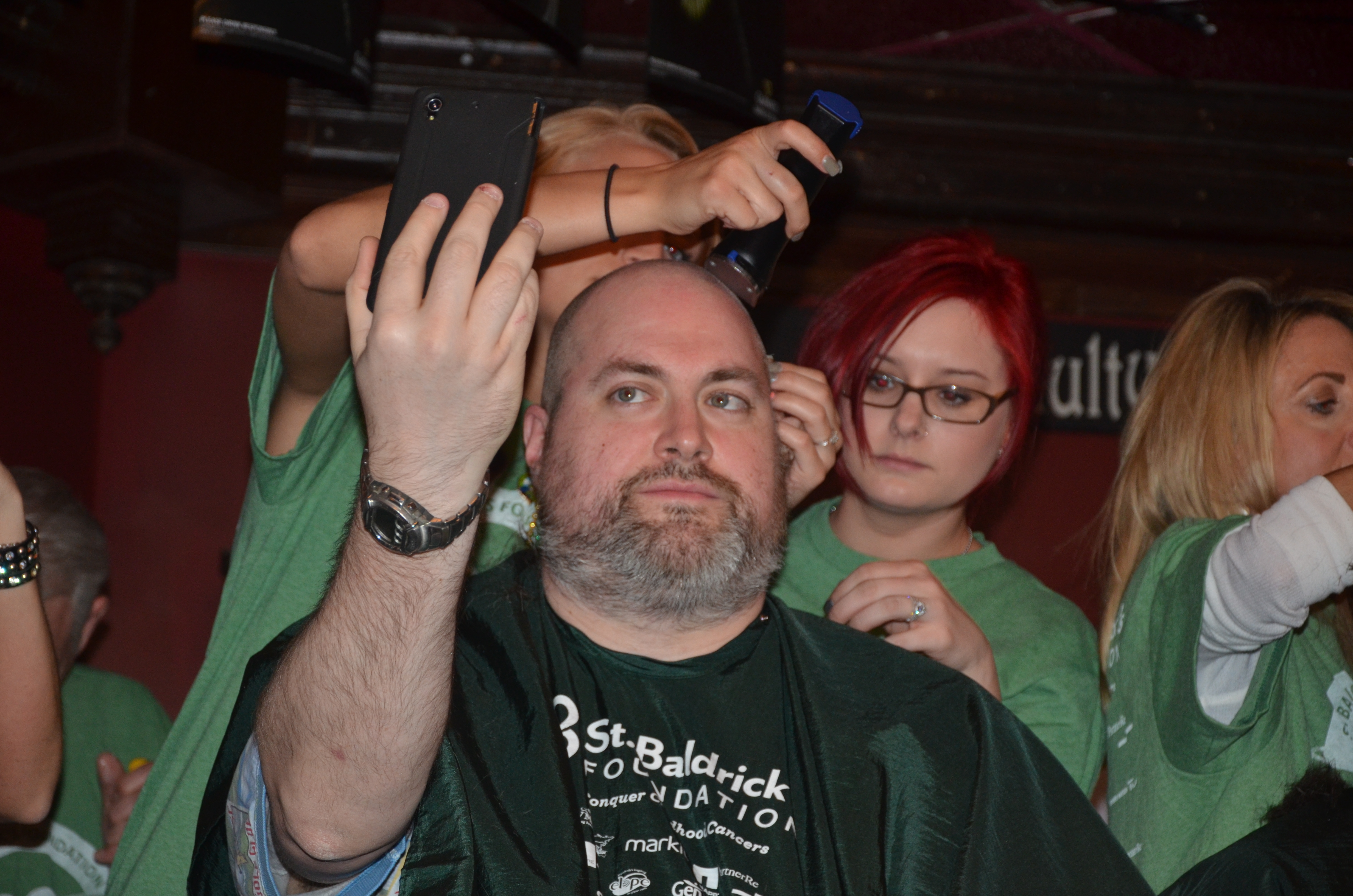 Since I have no hair, or not much hair, I help by contributing money and documenting the event.